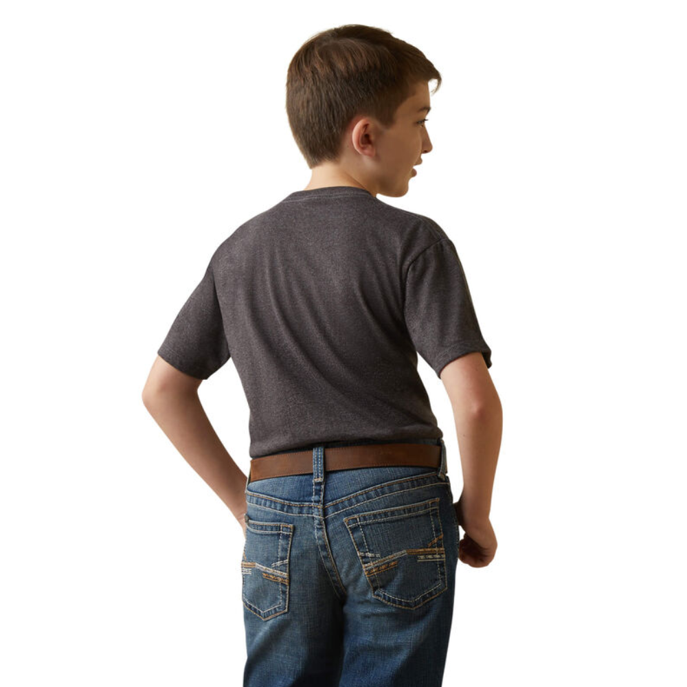 Ariat Boys Logoscape T-Shirt, Durable enough for the barn or playground, comfy enough for hanging at home, this soft t-shirt is an instant favorite. Featuring a cool landscape on the back, it looks great alone but also layers well under flannels and hoodies.