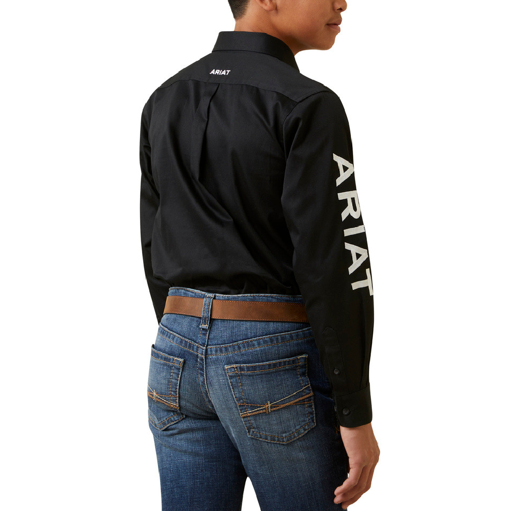 Ariat Boys Team Logo Shirt. Straightforward, solid Western twill. Comfortable and tough, it features Ariat’s specialized seam construction for unmatched freedom of movement.