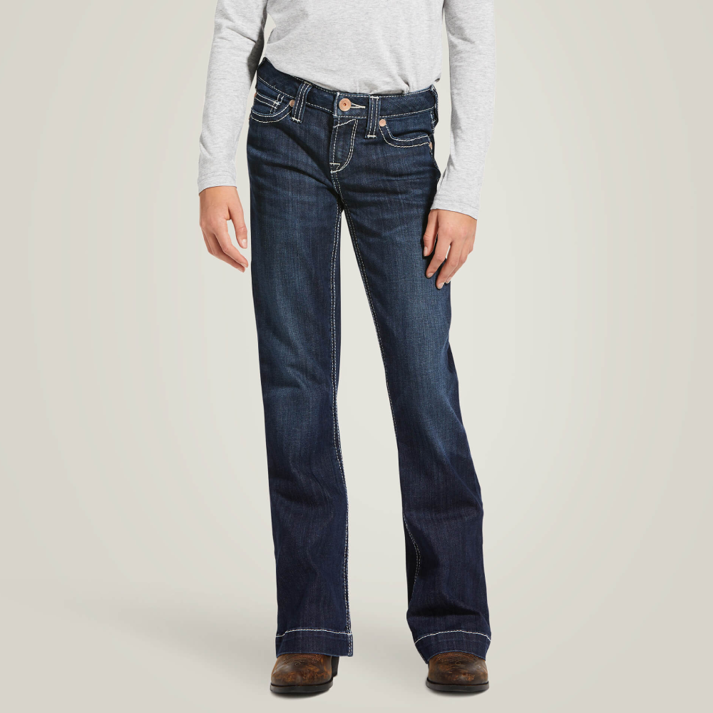 Beautiful Ariat Girls Ella Wide Leg Jeans. For school time, horse time, or just plain hang time, this denim is designed to go anywhere she goes.