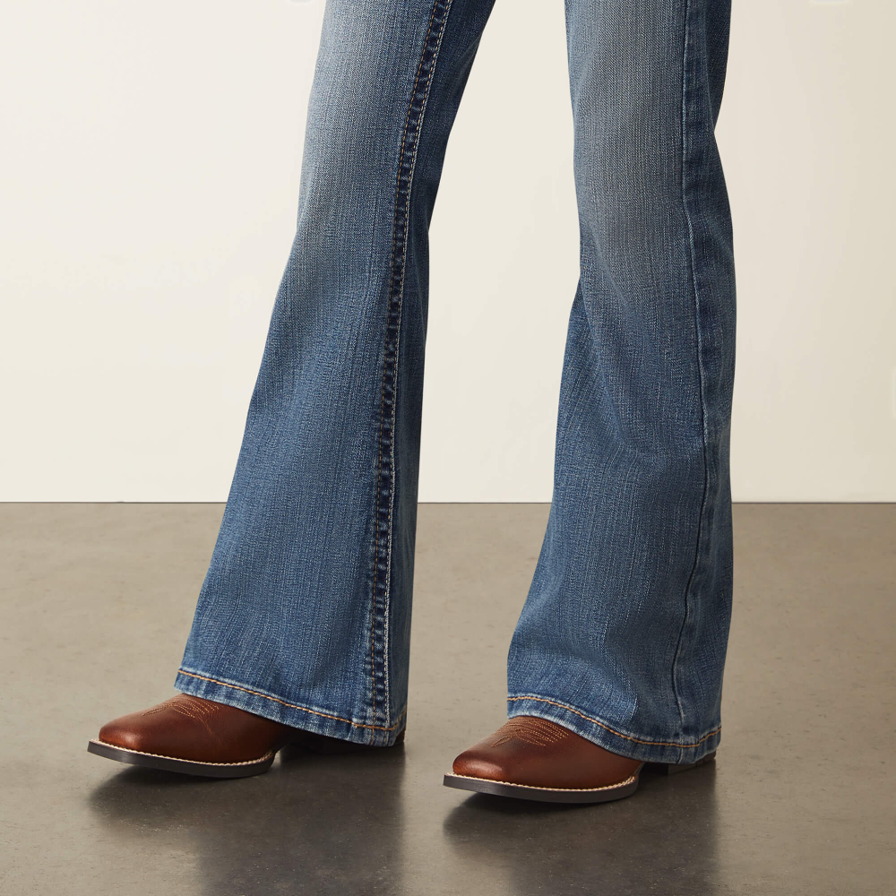 Cute Ariat Girls Flare Jeans. The stretch and durability you need in the saddle, in a versatile flare silhouette you can dress up for a night out. Plus, the subtle “A” stitched on the back pocket lets you show off your love of Ariat wherever you go.
