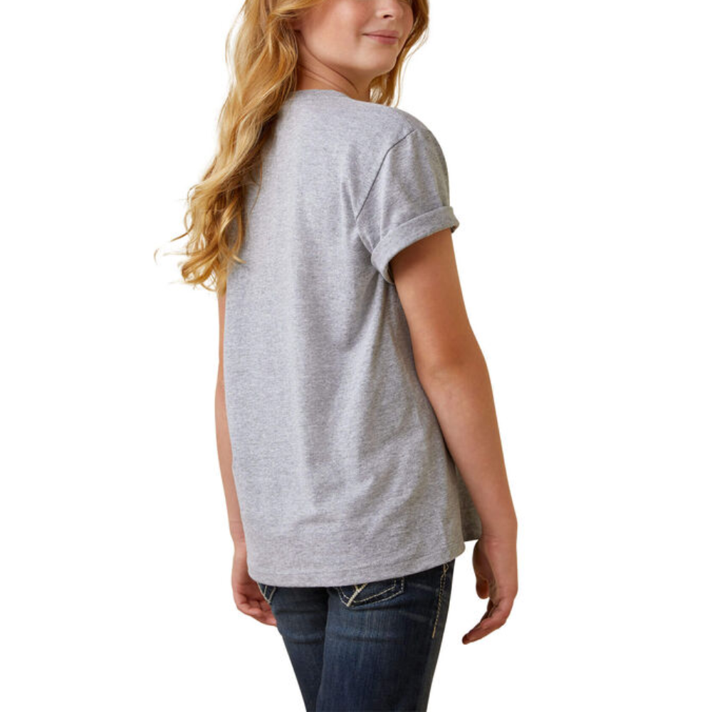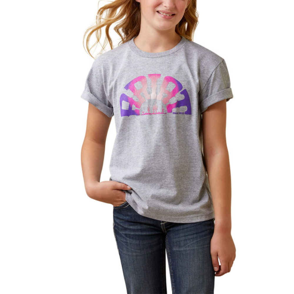 Ariat Girls Sunset T-Shirt, We elevated her favorite t-shirt with soft jersey fabric and a bright Ariat logo. The result is a comfy staple she’ll wear from school to the barn and back again.